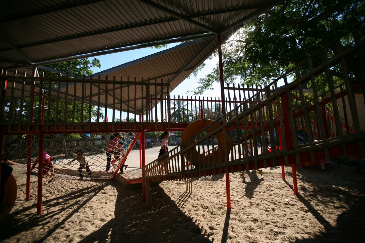 KTS tìm kiếm hình khối hài hòa với hình dạng phức tạp của khu đất, giữ lại toàn bộ những cây bóng mát đã tồn tại ở khu đất trước đó. Tạo thành những tuyến chạy dài thay đổi cao độ, kiến tạo các không gian vui chơi liên tục biến đổi theo di chuyển của người chơi.